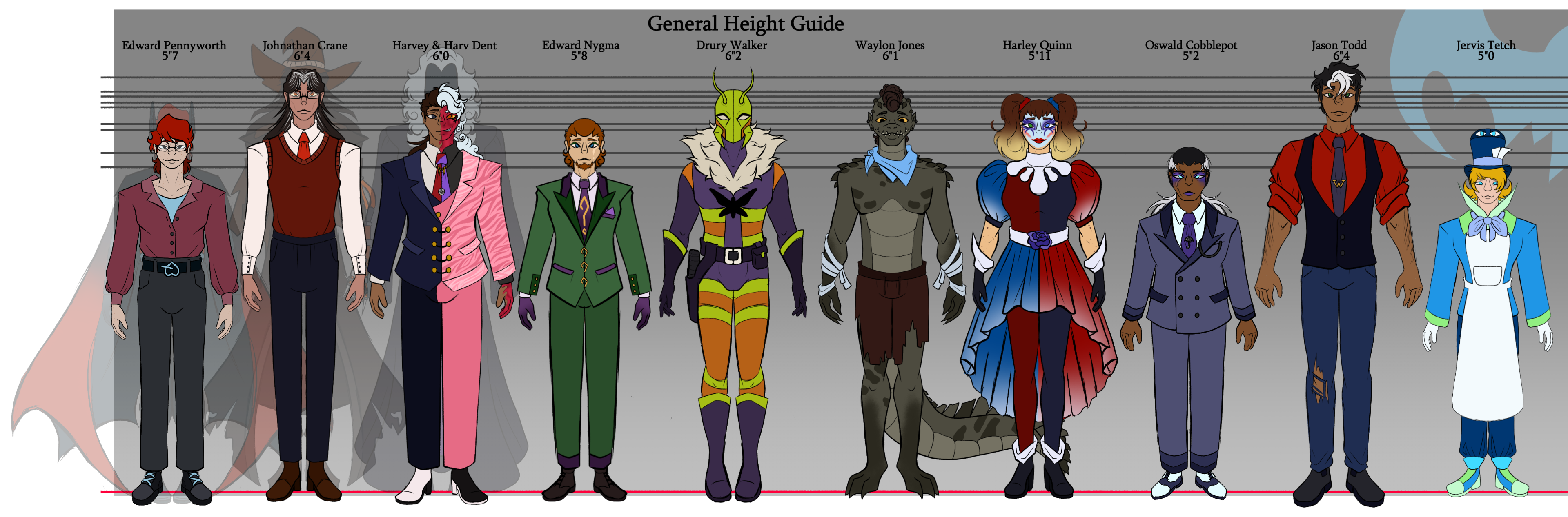 Batman AU Designs - Height Chart